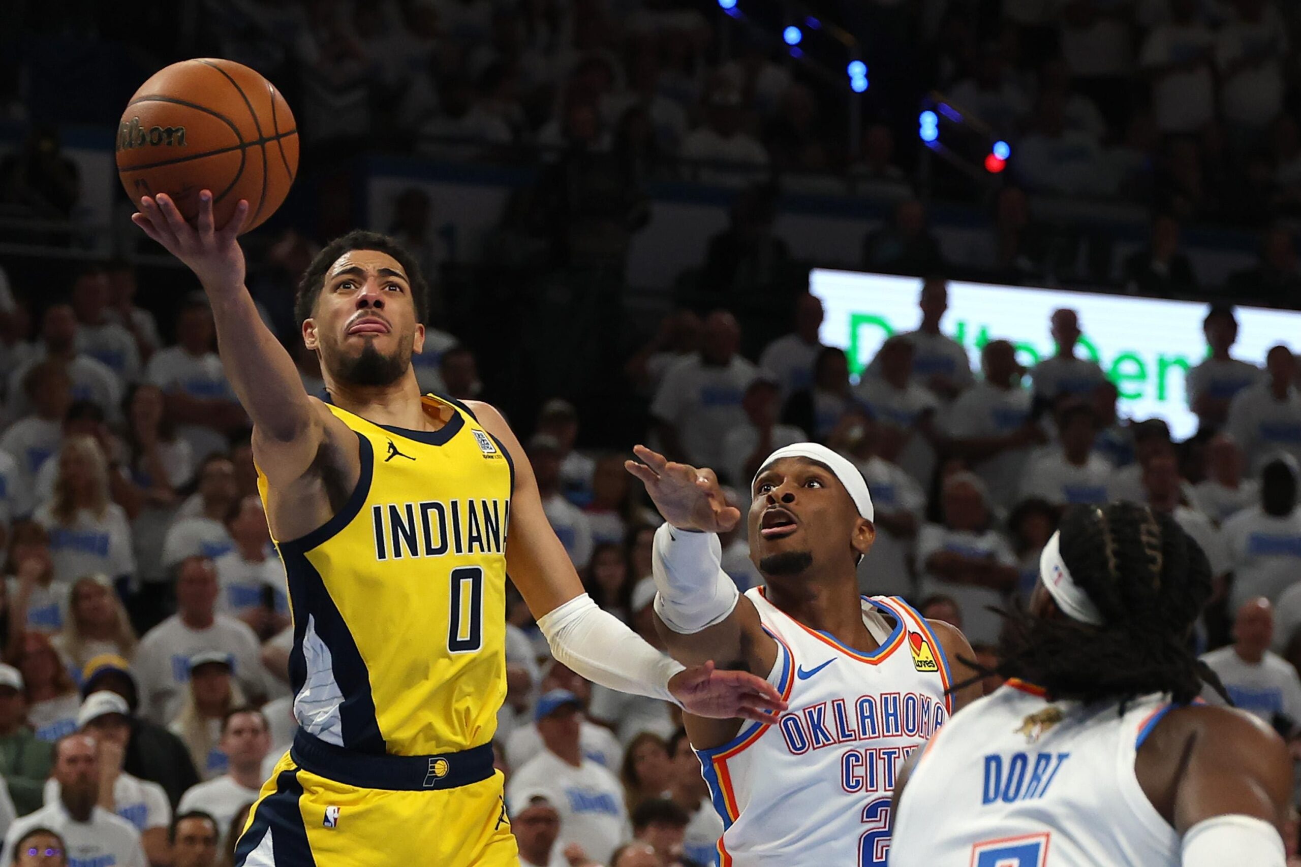 Уже через три минуты после начала игры Лугенц Дорт плотно опекал Халибертона по всему периметру даже без мяча. Чуть позже, после заслона, Халибертон пытался отдать передачу, но Дорт буквально висел перед ним в прыжке (в итоге владение закончилось потерей).