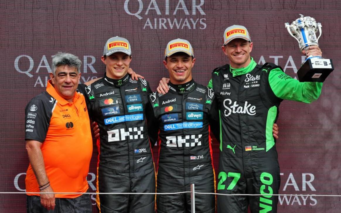 - Примечательным моментом стало решение Джорджа Расселла, Шарля Леклера, Исаака Хаджара, Габриэля Бортолето и Оливера Бирмана посетить пит-лейн непосредственно перед стартом, чтобы сменить промежуточные шины на слики. Остальные участники заезда выбрали старт на промежуточных покрышках.